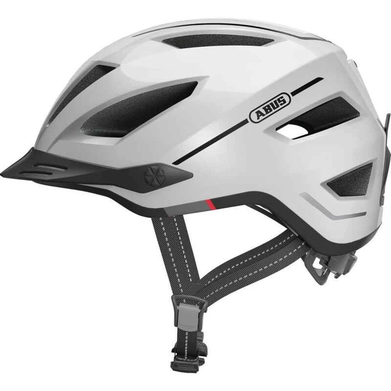 ABUS bietet mit dem Pedelec 2.0 einen Fahrradhelm, der die hohen Sicherheitsanforderungen der Großstadt erfüllt. Mit seinem tiefen Schläfenbereich bietet er dem Träger besonderen Schutz. Darüber hinaus zeichnet den Pedelec 2.0 eine integrierte Regenhaube aus, die sich bei den ersten Regentropfen schnell über den Helm ziehen lässt. Das besonders helle, aufladbare Licht und das austauschbare Visier bieten zusätzlichen, passiven Schutz.