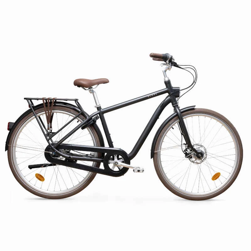 In den Gepäckträger integrierter Rückstrahler. Reflektierende Bänder am Vorder- und Hinterreifen für mehr Sichtbarkeit bei jedem Wetter in der Stadt.