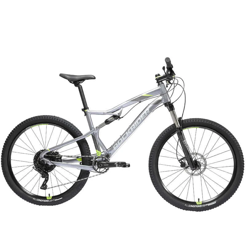 Leichte Laufräder: Die Felgen, kombiniert mit leichten Reifen, sind 230 g leichter als beim ST 540 S. 28 Speichen für hohe Steifigkeit und Stabilität. Die exklusiven Rockrider All Conditions Light-Reifen (60 TPI, 27,5 Zoll) eignen sich dank der Seitenstollen für jedes Gelände. Die Breite von 2,2 bietet hohen Komfort und gute Haftung in anspruchsvollen Passagen.