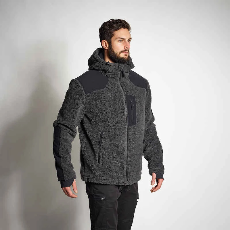 Fleecejacke mit Microfleecefutter, Armabschlüsse mit Daumenloch, Kapuze.